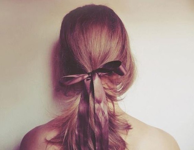 Thay vì dùng dây thun để buộc tóc thì hãy thay đổi bằng một dải dây ruy băng, không chỉ tạo điểm nhấn cho mái tóc mà còn khiến bạn trông "bánh bèo" hơn đấy! Kiểu tóc này rất hợp cho những bạn nữ thích style nhẹ nhàng.