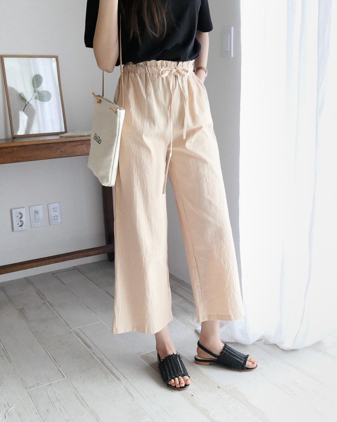 Nếu bạn thích mặc quần ống rộng và đang tìm một kiểu quần mát mẻ hè này thì quần linen cạp cao như thế này chính là câu trả lời.