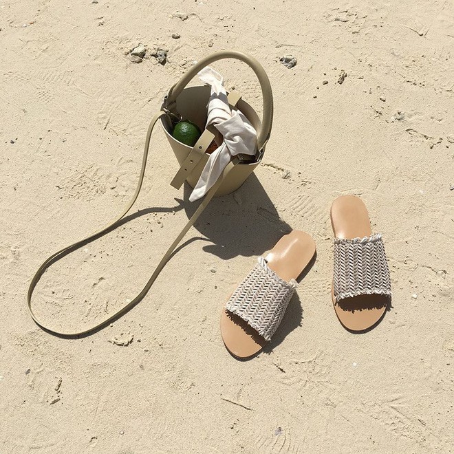 Bên cạnh phiên bản quai trơn, kiểu dép lê này còn có những biến tấu thú vị như quai đan, quai giả cói để các nàng chọn lựa. Trong đó, phiên bản giả cói rất thích hợp cho những chuyến đi biển.