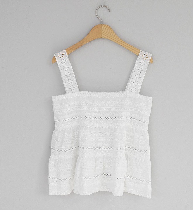 Hẳn bạn sẽ rất bất ngờ khi biết kiểu áo 2 dây bản to với chất liệu vải đăng ten đục lỗ "xưa xửa xừa xưa" này đã quay trở lại và đang là chiếc áo được hàng loạt shop thời trang cũng như con gái châu Á lăng xê.