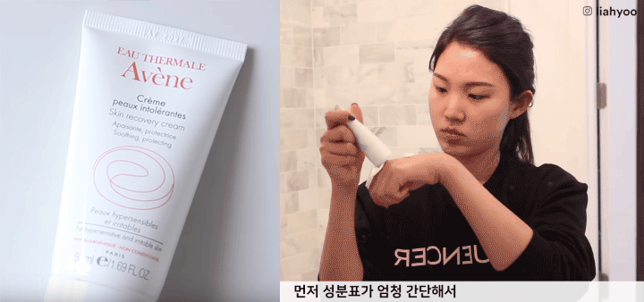 Sau khi lau mặt với nước ngâm yến mạch, Liah Yoo sử dụng loại kem dưỡng cực kỳ lành tính và sản phẩm mà cô dùng là Avene CPI Skin Recovery Cream. Theo Liah Yoo, khi da bị kích ứng mẩn đỏ, việc cần làm là tái tạo và phục hồi chứ không nhất thiết phải dùng nhiều sản phẩm khác như mặt nạ hay serum.