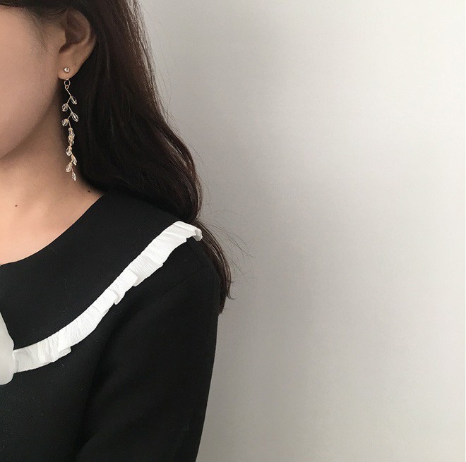 Đôi khi chẳng cần "chiêu trò" gì nhiều, các nàng chỉ cần nhấn nhá set đồ của mình một đôi khuyên tai dáng dài, nổi bần bật giữa làn tóc, buông nhẹ xuống vai là đã đủ thu hút mọi ánh nhìn. Khuyên tai dáng dài có rất nhiều biến tấu, từ tối giản, phá cách cho đến bánh bèo duyên dáng, chắc chắn sẽ khiến các nàng, dù có cá tính hay gu ăn mặc thế nào cũng sẽ thấy mê mẩn ngay tức thì.