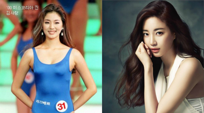 Cựu Hoa hậu Kim Sarang thời mới đăng quang vẫn còn chút thô với đường chân mày cứng ngắc hay tô son, kẻ mắt thật đậm. Còn cô của ngày hôm nay thì đẹp xuất sắc với phong cách makeup trong veo, tự nhiên mà không hề nhạt nhòa.