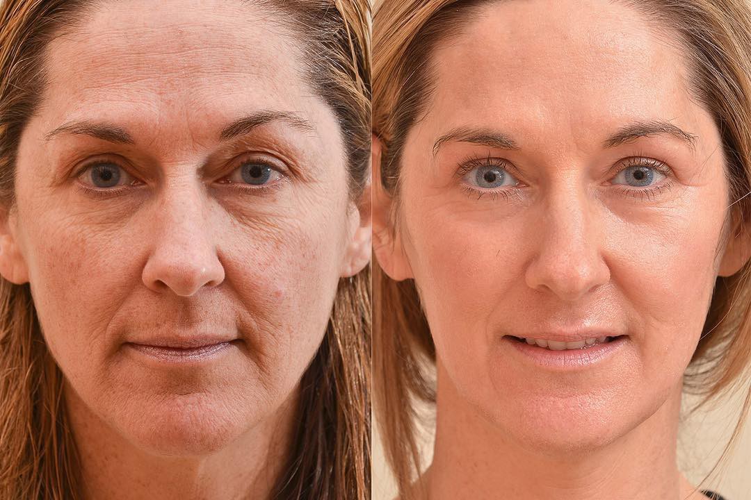 Làn da trước và sau khi trị nếp nhăn bằng laser.