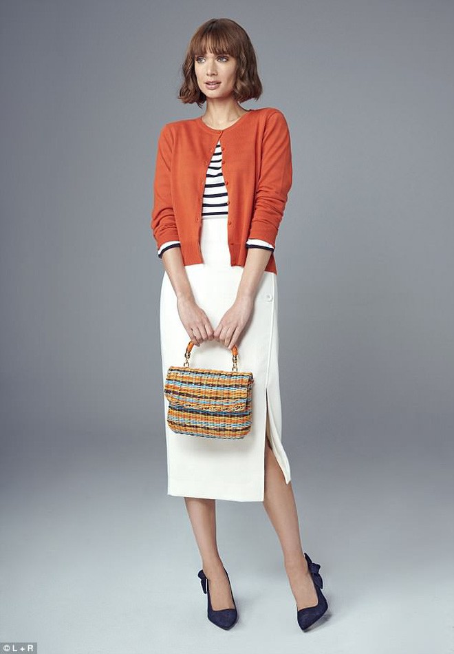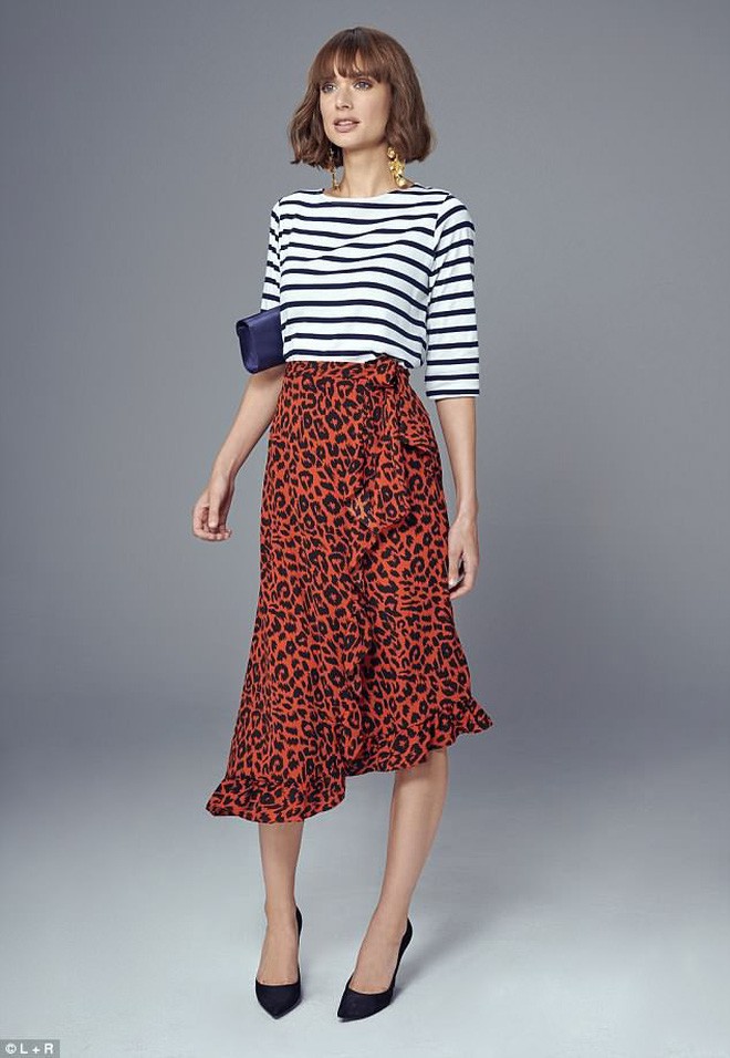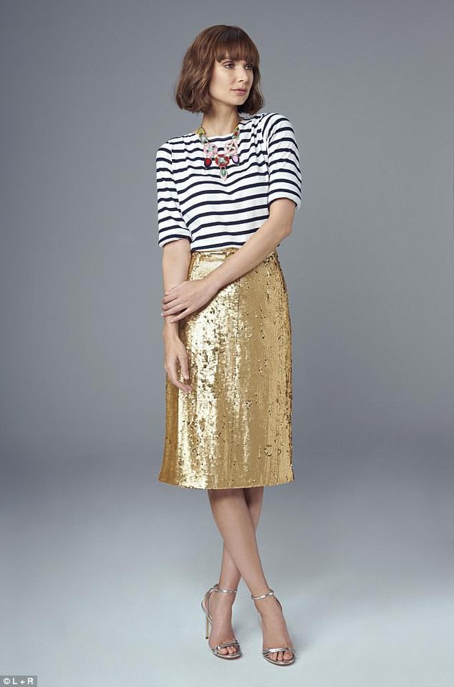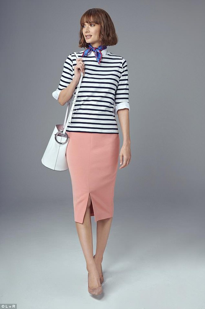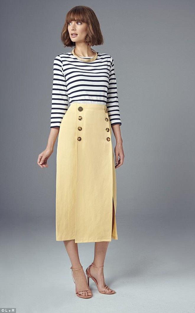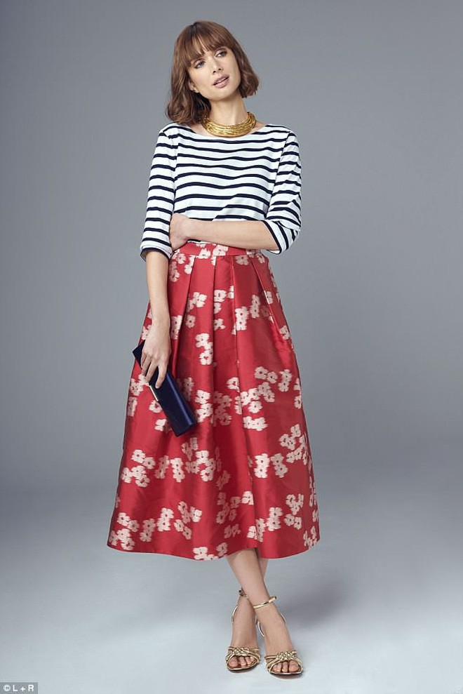 Còn khi tham dự những buổi tiệc tối hoặc lúc hò hẹn, bạn cũng hoàn toàn có thể mặc áo phông kẻ bằng cách mix chúng với những loại chân váy dài quá gối. Những mẫu chân váy này vừa có vẻ kín đáo, thanh lịch lại hòa lẫn cùng vẻ trẻ trung của họa tiết kẻ sẽ tạo nên set đồ đơn giản mà ưng mắt. Tùy vào phong cách và sự kiện tham dự, bạn có thể mix áo với những loại chân váy ôm hay chân váy quấn bay bổng nhẹ nhàng.