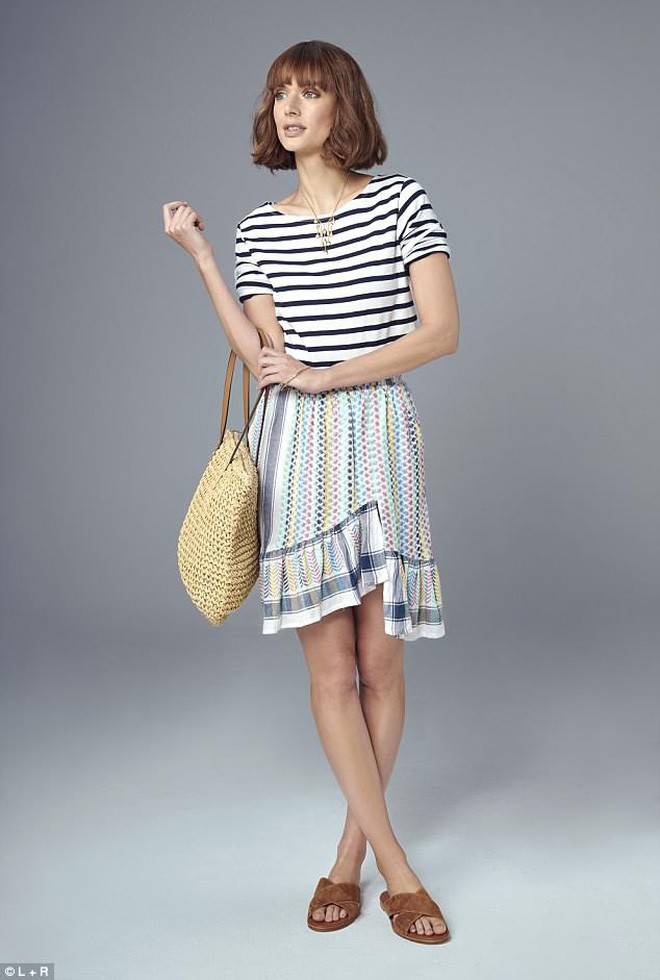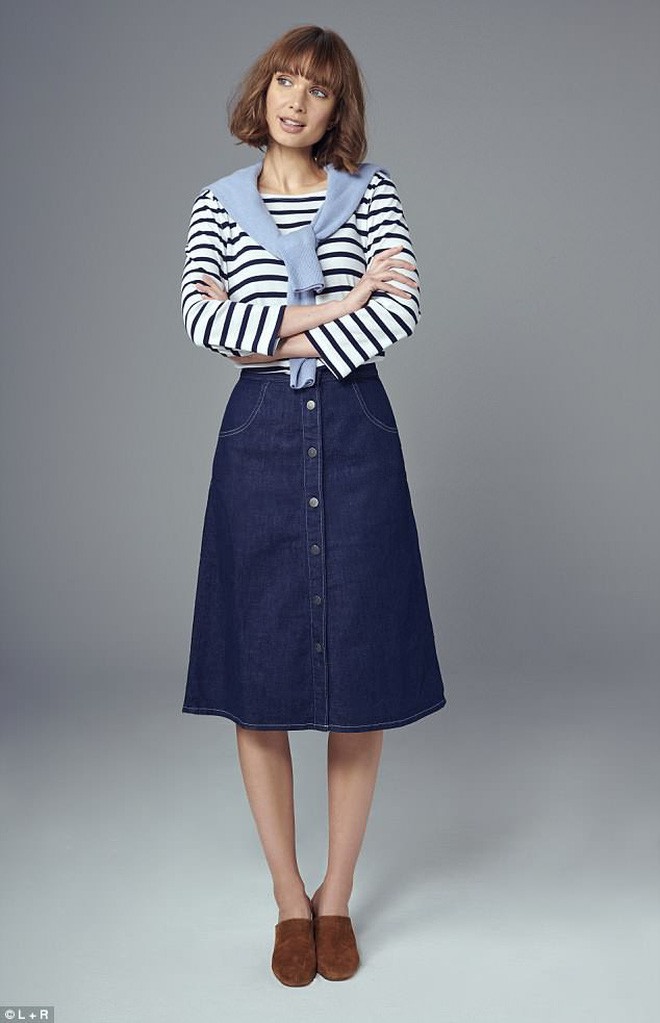 Vì thiết kế đơn giản lại dễ mix nên áo phông kẻ là item được nhiều cô nàng lựa chọn để diện hàng ngày. Nếu là 1 cô nàng cổ điển, yêu thích phong cách nhẹ nhàng, bạn có thể mix áo kẻ với những mẫu chân váy dài qua đầu gối nữ tính. Bạn cũng đừng quên sơvin để bộ trang phục gọn gàng và khiến cơ thể có vẻ cao ráo hơn.