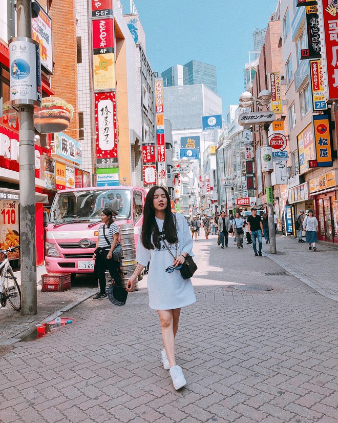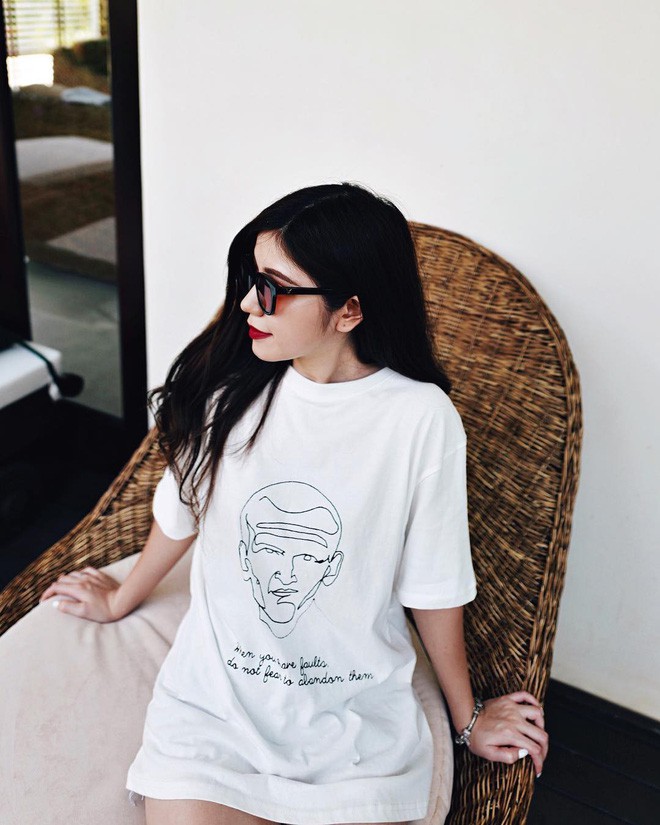 Áo phông oversize tựa như một BFF mà chúng ta có thể tin tưởng trong mọi hoàn cảnh: trời nóng - áo phông, thích ăn mặc thoải mái - áo phông, ngại diện đồ cầu kỳ - áo phông, không biết mặc gì - áo phông... Thế nên dù có tíu tít với đủ loại trang phục mới mẻ, kiểu cách, các hot girl Việt vẫn chẳng thể bỏ quên người bạn này và luôn "đoàn tụ" ít nhất dăm ba bữa một tuần. Công thức "đinh" được áp dụng liên tục chính là áo phông oversize diện cùng quần short theo kiểu giấu quần và chốt hạ bằng một đôi sneaker thật "chất".
