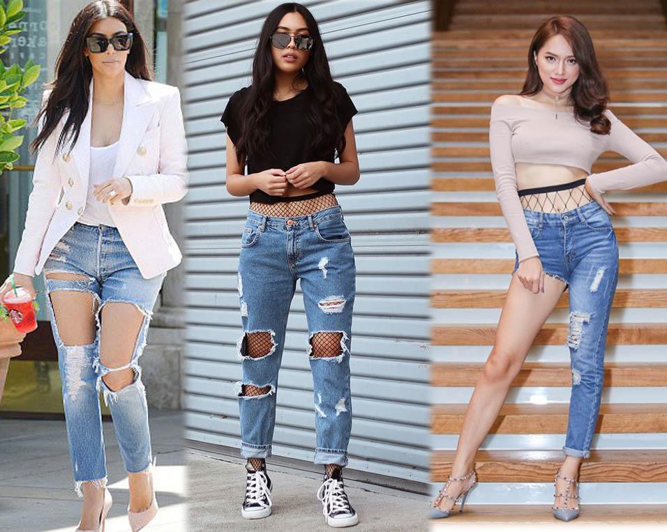 Kiểu quần jeans rách được nhiều chị em yêu thích để thể hiện sự phóng khoáng nhưng lại khiến các chàng trai cảm thấy khó hiểu và phản cảm. Phần lớn những người được hỏi đều cho rằng quần rách, tua rua là kiểu đồ kém nữ tính nhất của phụ nữ.