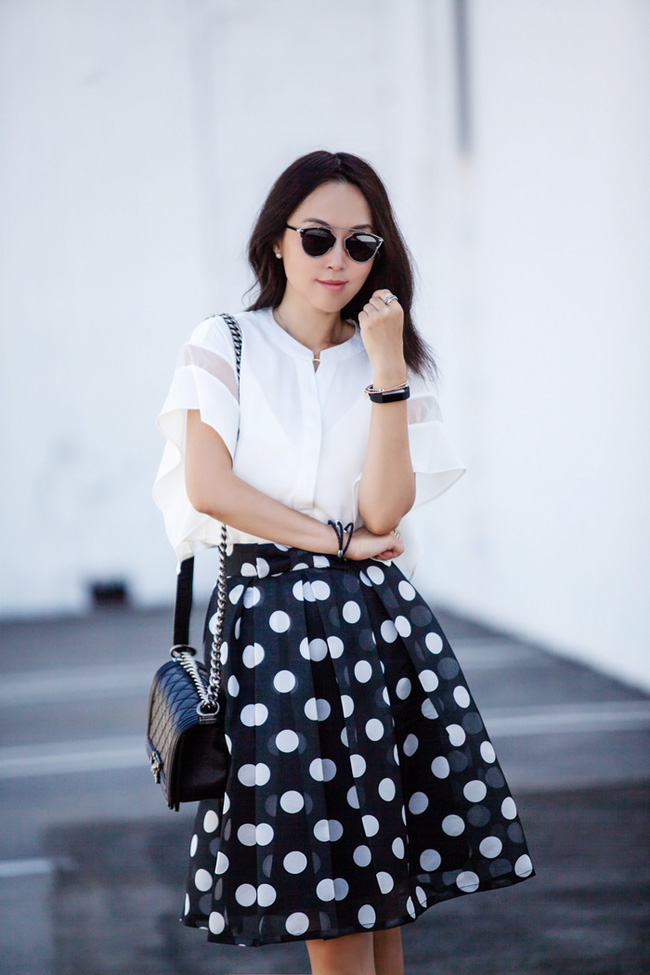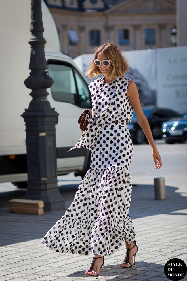 Bên cạnh họa tiết Gingham, tinh thần "hoài cổ" còn được đẩy lên cao độ hơn bao giờ hết với sự xuất hiện của họa tiết chấm bi. Vô vàn những thương hiệu nổi tiếng thế giới đang đem những chấm tròn đặc trưng của những năm 80 đầy màu sắc vào trong những thiết kế rực rỡ, hào nhoáng trên sàn catwalk như Givenchy, Louis Vuitton… Thế nhưng thay vì sặc sỡ sắc màu, họa tiết chấm bi trong năm nay chủ yếu được điểm tô với gam màu tối giản, trầm tối nhưng kích thước tùy biến, linh hoạt và ngẫu hứng.