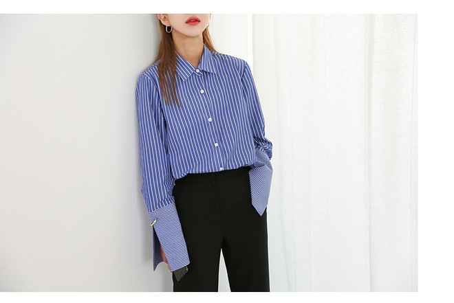 Những thiết kế sơmi kẻ sọc với điếm nhấn tay chuông rất trendy, trong khi kiểu tay chuông đang hot như thế này thì tại sao các nàng không sắm cho mình một chiếc nhỉ.
