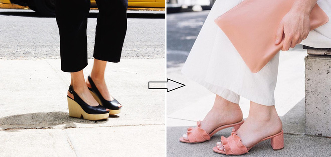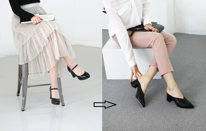 1. Giày đế xuồng thay bằng dép mule đế vuông