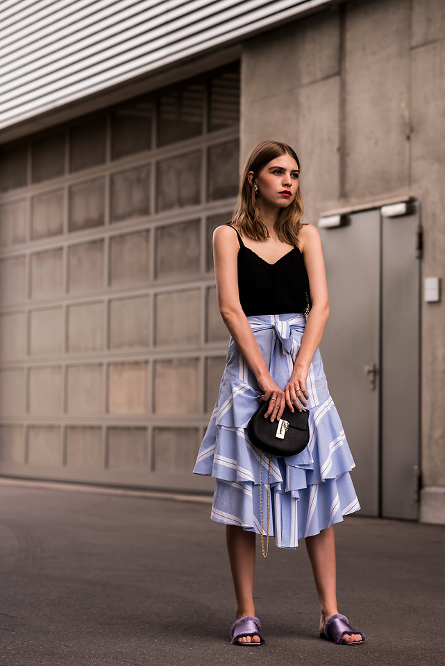Giày đế xuồng vốn là item vô cùng quen thuộc trong tủ đồ của nhiều cô nàng vì tính tiện dụng, thoải mái, đi nhiều mà không sợ đau chân. Tuy nhiên, phần đế xuồng này thì lại thật chẳng đẹp mắt chút nào, chúng nặng nề, cục mịch, già nua, kéo dài chân nhưng cũng khiến từng bước đi như "có trọng lượng hơn". Và dép mule đế vuông chính là giải pháp thay thế hoàn hảo cho giày đế xuống.