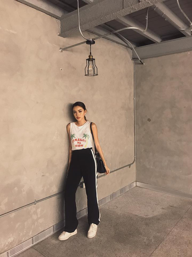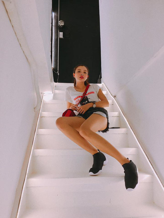 Thân hình mình dây mảnh khảnh là lợi thế lớn cho Tú Hảo khi diện những set đồ đầy tính thể thao và khỏe khoắn như thế này.