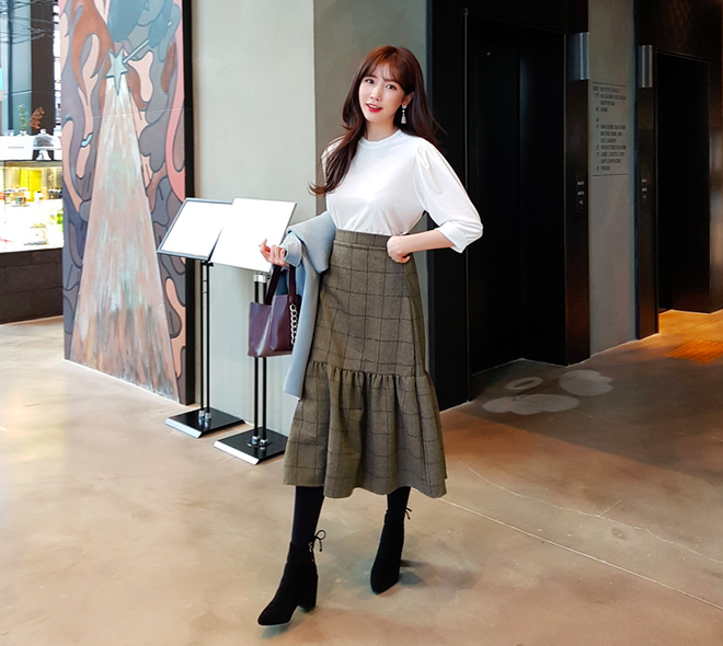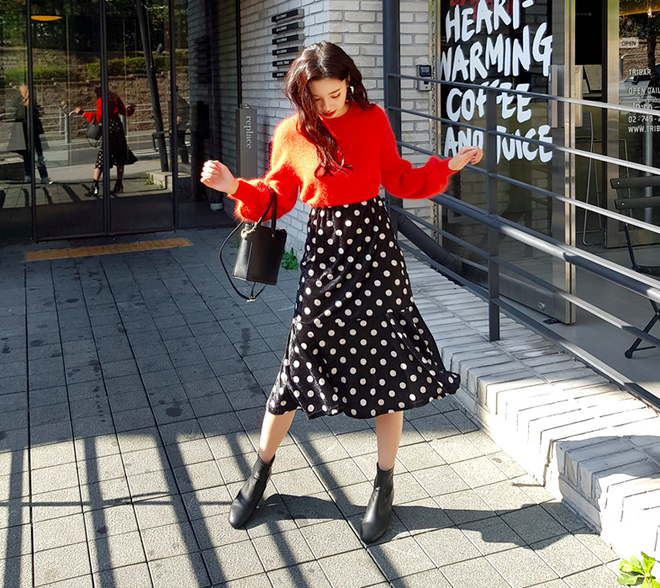 Áo ống tay loe được phối hợp ăn ý cùng váy chữ A - phong cách thời trang thu đông này chưa bao giờ lỗi thời với Irene Kim (Ảnh: Instagram @ireneisgood)