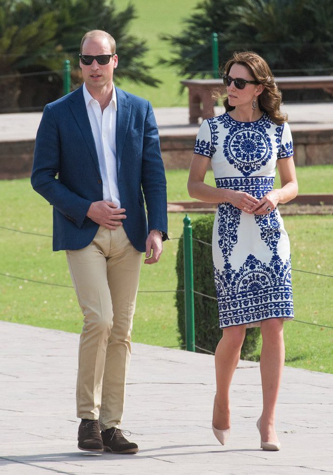 Công nương Kate Middleton gây chú ý khi diện một chiếc váy trắng họa tiết xanh đắt tiền của nhà thiết kế người Mỹ gốc Ấn Naeem Khan. Đây được coi là một trong những chiếc váy đẹp nhất được Công nương Kate diện trong chuyến viếng thăm dài ngày ở một số nước châu Á. Bộ đầm được bán với giá 2.512$ - khoảng 45 triệu đồng.