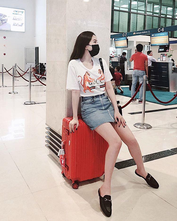 Chẳng cần phải ăn diện cầu kì, một chiếc áo phông trắng đơn giản in họa tiết đến từ nhà Gucci và một chiếc chân váy jeans phối trộn lại với nhau đã mang đến cho giọng ca "Là con gái phải xinh" vẻ ngoài năng động.