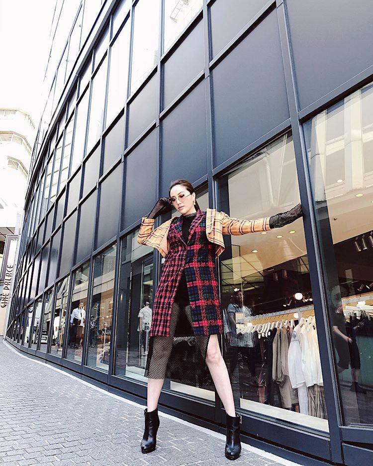 Nổi loạn với trang phục lưới sexy khoác ngoài nhiều layer áo kẻ ô đầy sắc màu.