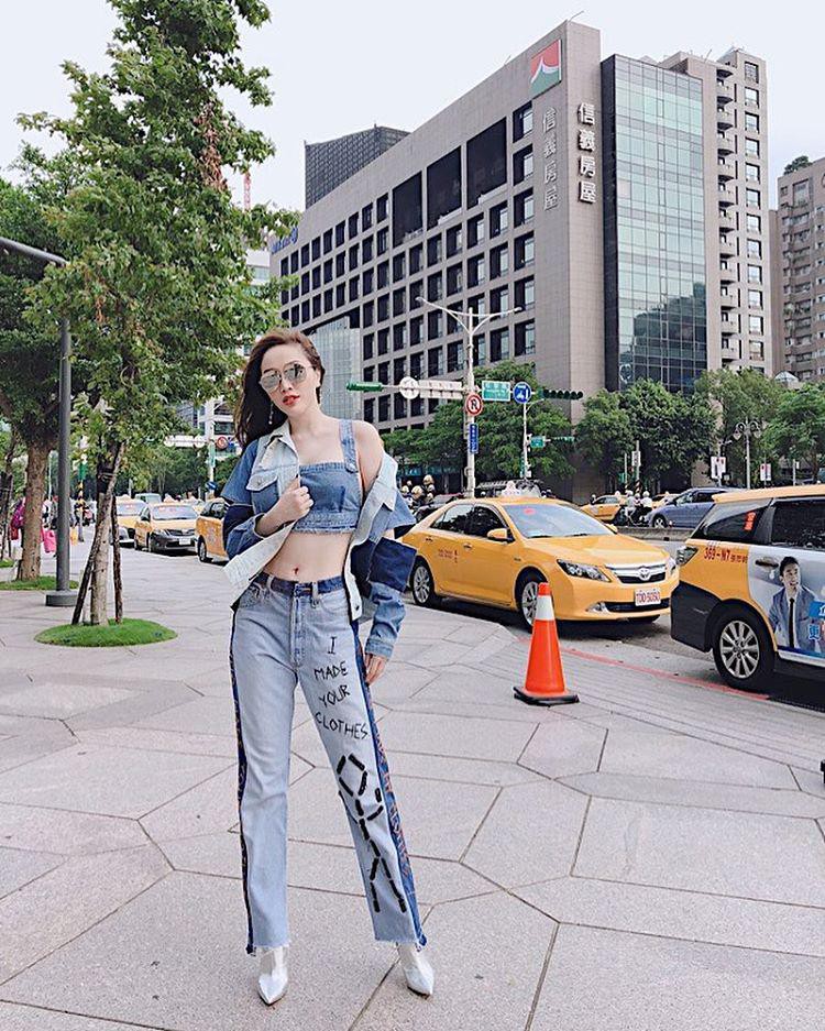 Gợi cảm và trẻ trung đầy thời thượng trong cây đồ denim kết hợp giữa quần jeans thêu họa tiết, áo croptop và khoác ngoài "hầm hố".